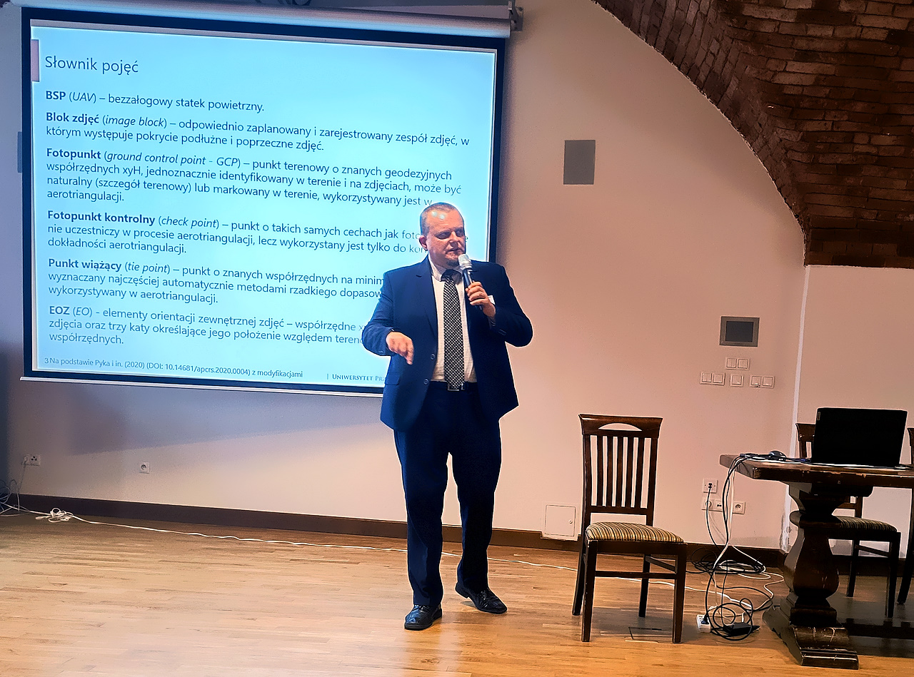 Na spotkaniu poruszono wiele interesujących tematów, m.in. dr hab. inż. Adam Iwaniak reprezentujący Wrocławski Instytut Zastosowań Informacji Przestrzennej i Sztucznej Inteligencji omówił zagadnienia dotyczące AI w administracji geodezyjnej – bezpieczeństwo i efektywność. Wykorzystanie danych fotogrametrycznych w pracy geodety przedstawił Jerzy Biegalski reprezentujący firmę Softline Plus. Innowacje w pomiarach przy modernizacji baz danych EGiB zaprezentował mgr inż. Tomasz Czerski Dyrektor zarządzający / Czerski Trade Polska Sp. z o.o. Uczestnicy mieli również okazję wysłuchać wystąpienia prof. dr hab. Andriy Martyn z Narodowego Uniwersytetu Biozasobów i Zarządzania Naturą Ukrainy pt. "Prowadzenie katastru nieruchomości i ochrona danych w warunkach kryzysowych".